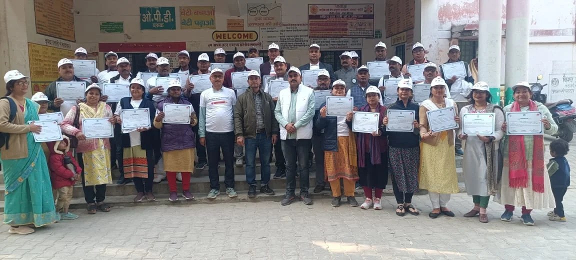 भदोही, 5 दिसंबर। हेल्थ वैलनेस प्रशिक्षण के तृतीय बैच का समापन विकास खंड -डीघ, जनपद-भदोही में स्वास्थ्य केंद्र कोइरौना में किया गया। जिसमें डीघ ब्लॉक के पूर्व माध्यमिक विद्यालय के 40 शिक्षकों को हेल्थ वेलनेस के 11 मॉड्यूल का प्रशिक्षण दिया गया। जिसमें स्वस्थ जीवन शैली , धूम्रपान , इंटरनेट ,एचआईवी रोग से रोकथाम, साइबर अपराध की रोकथाम आदि पर विस्तार से प्रशिक्षण दिया गया। प्रशिक्षण के समापन पर डीघ ब्लॉक सीएचसी के अधीक्षक डॉ. पी.सी.बिंद द्वारा प्रशिक्षण अभ्यर्थियों को प्रमाण पत्र वितरित किया गया। अधीक्षक द्वारा मास्टर ट्रेनर डॉक्टर सूर्यकांत मिश्रा एवं डॉक्टर जेपी सिंह को ढेर सारी बधाई दी कि आपने सकुशल प्रशिक्षण को संपन्न कराया। एवम शिक्षकों से इस प्रशिक्षण में जो कुछ सिखाया गया है।उसका सदुपयोग विद्यालय एवम जनमानस में किया जाय ताकि सभी लोगों का इसका लाभ मिल सके ।इस अवसर पर राजेश दुबे ,जया सिंह, सरिता, पूजा अग्रहरी,संगीता सिंह ,राम बहादुर ,सुनीता, सुबास उपस्थित रहे।