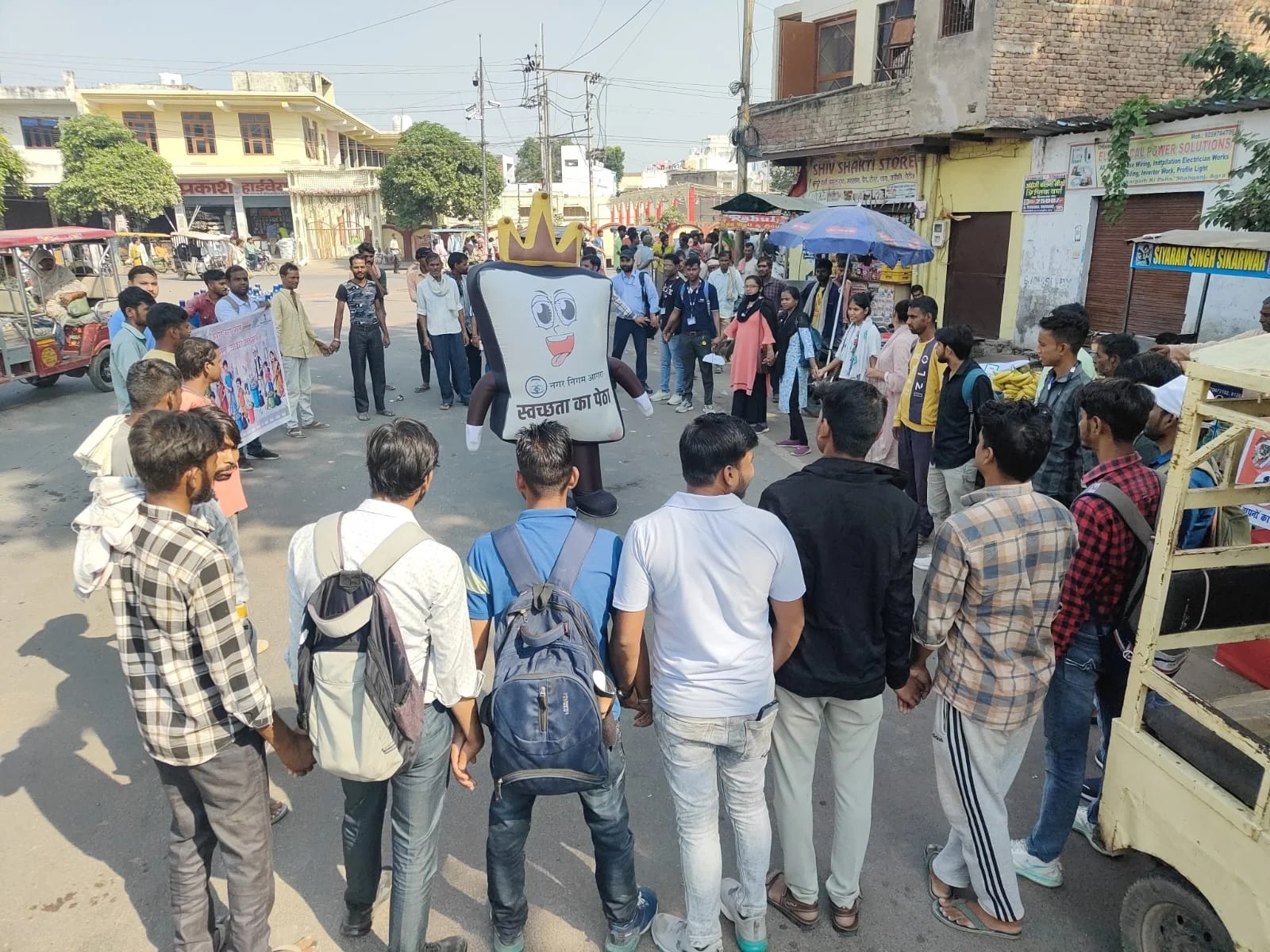आगरा, 23 अक्टूबर। अभिनेताओं के मास्क और पेठा मैस्कॉट पहनकर स्कूल के बच्चों ने नगर निगम की सहयोगी संस्था संवेदना डेवलपमेंट सोसायटी टीम के सहयोग से शाहगंज स्थित शंकरगढ़ की पुलिया बाजार में स्वच्छता रैली का आयोजन किया गया । रैली का मुख्य उद्देश्य लोगों को प्लास्टिक पॉलिथीन का उपयोग कम करने व उनके स्थान पर कपड़े से बने थैले का उपयोग करने के लिए जागरूक करना था।